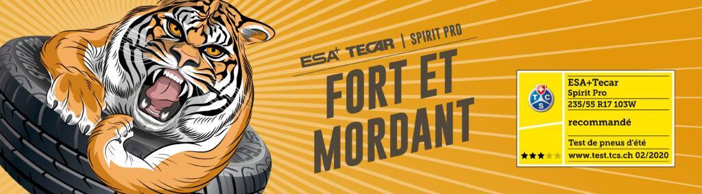 L’ESA+TECAR SPIRIT PRO a convaincu les experts lors du test TCS et reçu la note «recommandé». Nous en sommes fiers! L’ESA+TECAR SPIRIT PRO a été testé dans la dimension 235/55 R 17 et a su prouver sa performance forte et mordante. Un nouveau pneu ESA+TECAR triomphe à nouveau au test TCS! L’excellente qualité du pneu exclusif des garagistes constitue le choix optimal pour la sécurité sur les routes suisses.